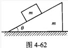 如图4-62所示质量为m的三角形物块,其倾斜角为θ,可在光滑的水平地面上运动。质量为m的矩形物块又沿斜面运动。两块间也是光滑的。该系统的动力学特征(动量、动量矩、机械能)有守恒情形的数量为()。
