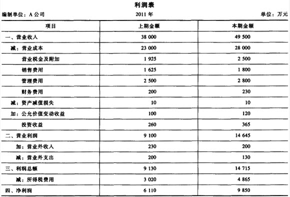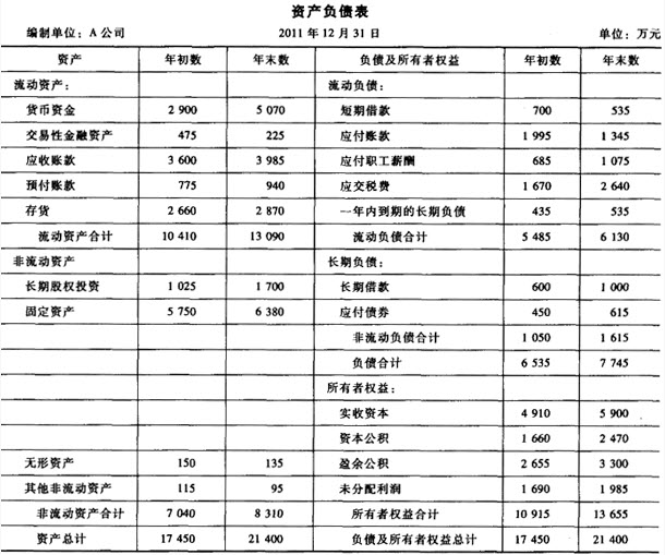 资料:A公司2011年12月31日资产负债表和利润表如下: