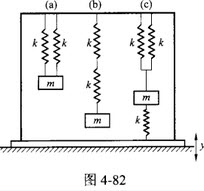 如图4-82所示振动系统中m=200kg,弹簧刚度k=10000N/m,设地面振动可表示为y=0.1sin(10t)(y以cm、t以s计)。则()。