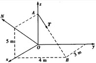 图示力T沿AB,T=1kN;ON轴在Oxz平面内,则T对x、y、N轴的矩分别为()。