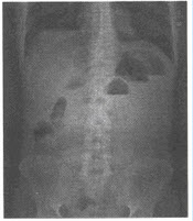 男性,43岁,腹痛、呕吐,停止排便排气1天,行腹部立位X线平片检查,如下图