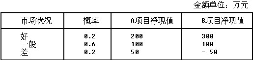 某企业有A、B两个投资项目,计划投资额均为1000万元,其净现值的概率分布如下表所示: