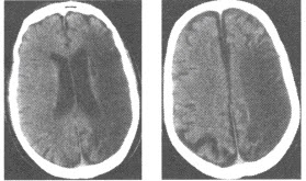 B:慢性为颅板下新月形高密度影