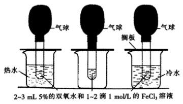 溶液后立即套上气球(大小相同)。等三支试管上的气球大小差不多相同时,同时置于三个烧杯中观察现象。