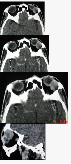 女,36岁,左眼眶外上部可触及一无痛性包块有两年,眼球向内下方突出,CT检查如图,最可能诊断为()