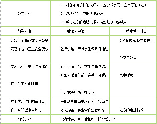 案例: 考虑到夏季天气过于炎热,某高中决定开设游泳课程。李老师负责高一年级的游泳课程教学工作,以下是其中一堂游泳课的教学方案,阅读并回答问题。