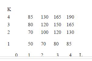 生产函数Q=f(L,K)的要素组合与产量的对应图,如图所示,这张图是以坐标平面的形式编制的。其中,横轴和纵轴分别表示劳动投入量和资本投入量,虚线交点上的数字表示与该点的要素投入组合对应的产量。 (1)图中是否存在规模报酬递增、不变和递减? (2)图中是否存在边际报酬递减? (3)图中哪些要素组合处于同一条等产量曲线上?