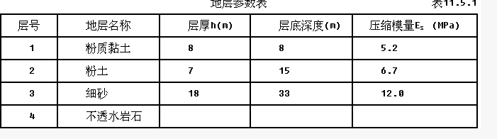 ①0~3m:粉土,γ=18.5kN/m3,φ=15°,c=5kPa;