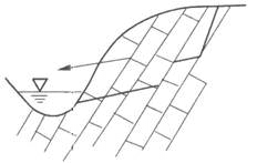 某水库近坝库区一滑坡如图所示,滑体形态受几组节理裂隙的控制,可能发生滑坡。