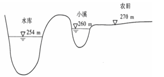 如图所示,某水库右岸有一片农田,农田的高程在270m左右,农田与水库间有一小溪,小溪水位高程约260m,水库正常蓄水位254m。水库和农田间下部为透水比较强的中粗砂,上部为黏性土。按图剖面分析,水库蓄水后农田发生()。